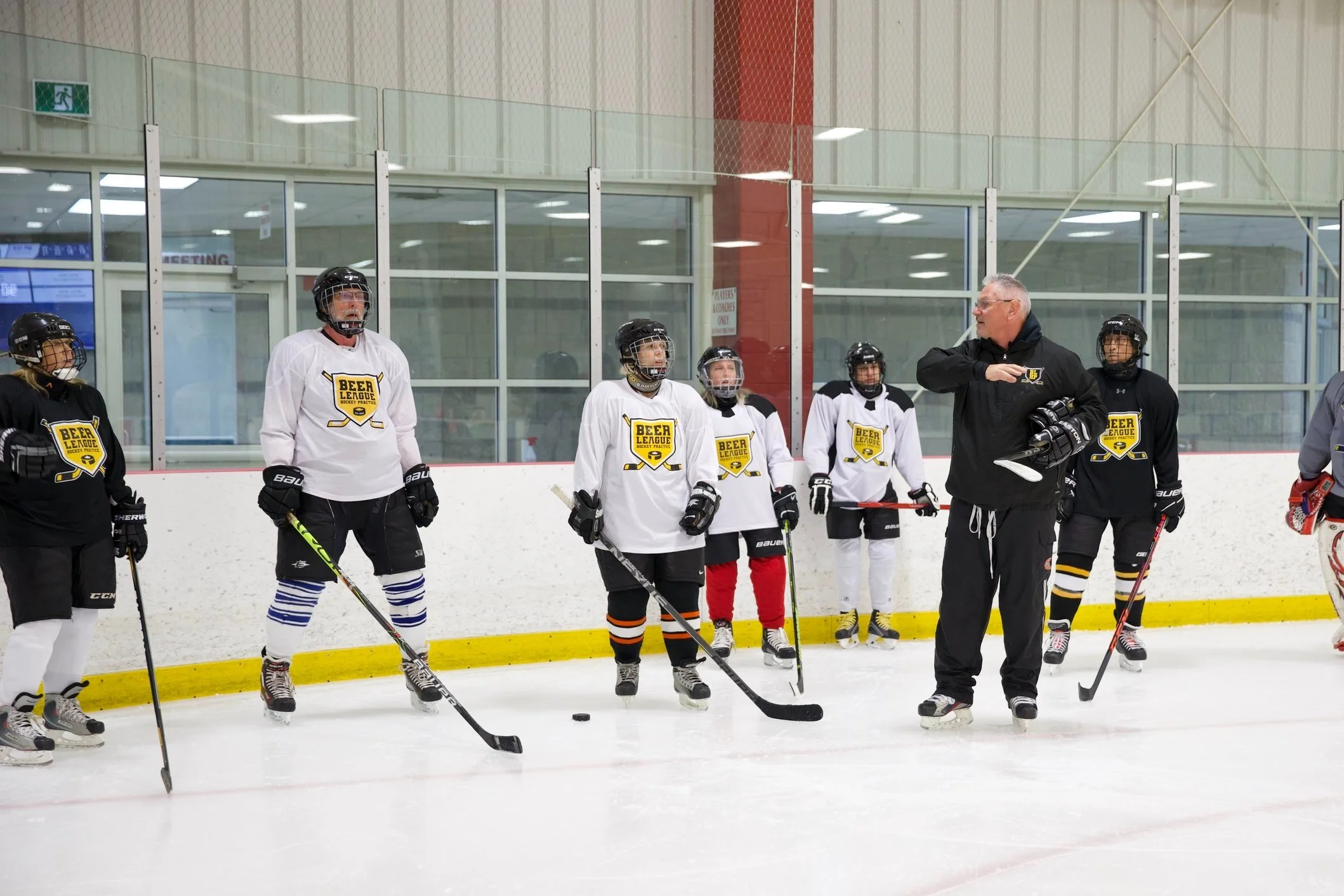 Hockey can be an intimidating sport to start playing as an adult. Beer League Hockey Practice is a safe and welcoming environment for anyone who wants to learn and improve. Everyone on the ice is there to get better. Beer Leaguers are supportive of each other, and want everyone to succeed and have fun!